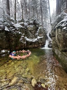 The setting was a pristine winter landscape: snow-covered forests, frozen rivers, and crisp, biting air. Each day, we practised focused breath work that calmed the mind and prepared the body for the icy challenges ahead. Cold exposure, whether through immersion in freezing water or hikes in sub-zero temperatures, taught me the incredible resilience of the human body when you fully embrace the present moment.